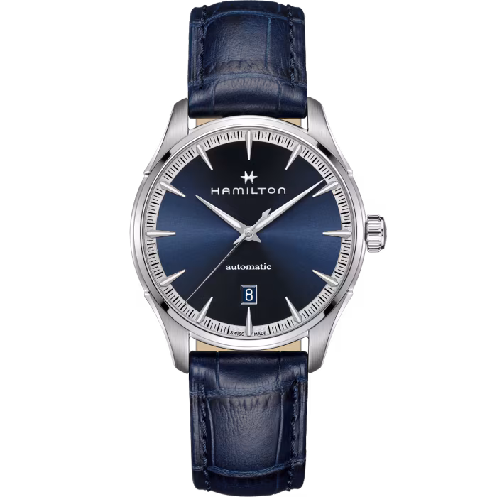 Die Jazzmaster Auto mit raffiniertem Design ist ein zeitgemässer Zeitmesser, der Ihnen sowohl im Berufsleben als auch am Feierabend treu zur Seite steht. Angetrieben von einem Automatikwerk mit einer Spiralfeder aus der neuen antimagnetischen Legierung NivachronTM, verspricht diese 40 mm Uhr eine präzise Zeitmessung über die ganze Woche.