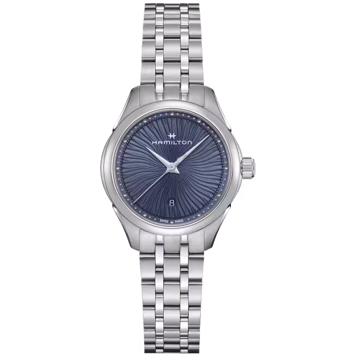 Auf den in Silberweiss, Mitternachtsblau und Samtschwarz gehaltenen Zifferblättern unserer Jazzmaster Lady Quartz lassen anmutige Linien die Illusion von Bewegung entstehen. In Kombination mit einem Edelstahlarmband oder einem Lederarmband rundet dieser raffinierte Zeitmesser im 30mm-Format jeden Look ab.