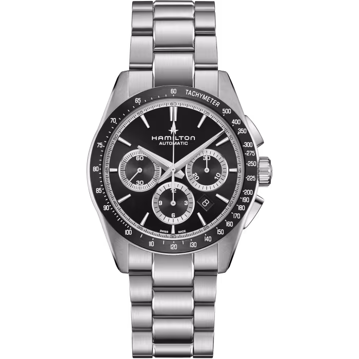 Die Jazzmaster Performer Serie überzeugt durch ihre ausdrucksstarke sportliche Optik und ist wie geschaffen für alle, die weder auf Funktion noch auf Stil verzichten möchten. Diese Jazzmaster Performer Automatic Chronograph wird vom automatischen Chronographenwerk H-31 mit 60 Stunden Gangreserve angetrieben. Sie besitzt ein 42-mm-Edelstahlgehäuse, das durch ein elegantes schwarzes Zifferblatt und ein dazu passendes schwarzes perforiertes Lederarmband im Rennsportstil abgerundet wird.