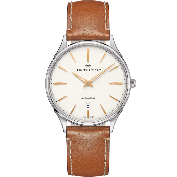 Mit der Jazzmaster Thinline Automatic können Sie einen Hamilton Zeitmesser ganz nach Ihrem eigenen Stil kreieren. Es steht eine Auswahl verschiedener Zifferblätter und Farbkombinationen für das Armband zur Verfügung. So können Sie dank des EasyClick-Systems Ihr Armband schnell und einfach ganz nach Lust und Laune wechseln. Mit Optionen, die von kräftigen, warmen Farben bis zu kühleren Nuancen reichen, zeigt sich die Jazzmaster Thinline genau so, wie Sie es sich wünschen.
