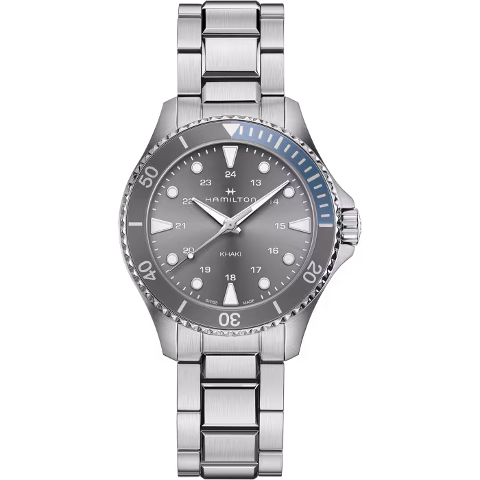 Mit einem sportlichen Look und hoher Funktionalität eignet sich die Khaki Navy Scuba Quartz 37 mm perfekt für die Zeitnahme am Strand oder im Meer. Diese Unisex-Taucheruhr ist in einer Vielzahl von Zifferblatt- und Armbandoptionen erhältlich und verleiht jedem Stil eine nautische Note.