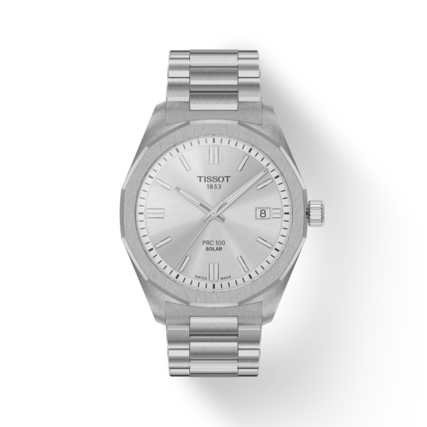 Mit seinem 39 Millimeter messenden 316L-Edelstahlgehäuse und der markanten, zwölfeckigen Lünette strahlt dieses Tissot PRC 100 Solar Quartz 39mm Modell Selbstbewusstsein aus. Unter dem flachen, sehr kratzfesten Saphirglas liegt ein solarbetriebenes Quarzwerk, das sich sowohl bei natürlichem als auch bei künstlichem Licht mühelos auflädt. Erreicht der Akkustatus ein niedriges Level, bleibt dies dank der End-of-Energy-Anzeige nicht unbemerkt.