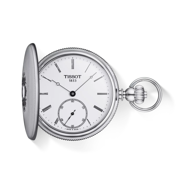 Die Tissot Savonette Mechanical Taschenuhren verbinden Geschichte und Tradition mit modernem Fachwissen. Diese Kollektion bietet die klassische runde Taschenuhr mit Sprungdeckel in unterschiedlichen Farbausführungen an, passend zu jedem persönlichen Geschmack und mit einem Hauch Tradition, der sich in den feinen Zeigern widerspiegelt und der Uhr eine Prise Nostalgie verleiht. Diese Taschenuhr mit Swiss Made Mechanikwerk mit Handaufzug besitzt ein 316L-Edelstahlgehäuse und Mineralglas. Das weiße Zifferblatt hat römischen Ziffern sowie eine kleine Sekunde bei 6 Uhr und besitzt elegant geschwungene Zeiger. Die Taschenuhr wird mit passender Kette geliefert und trägt auf dem Gehäuseboden eine Wappenprägung.