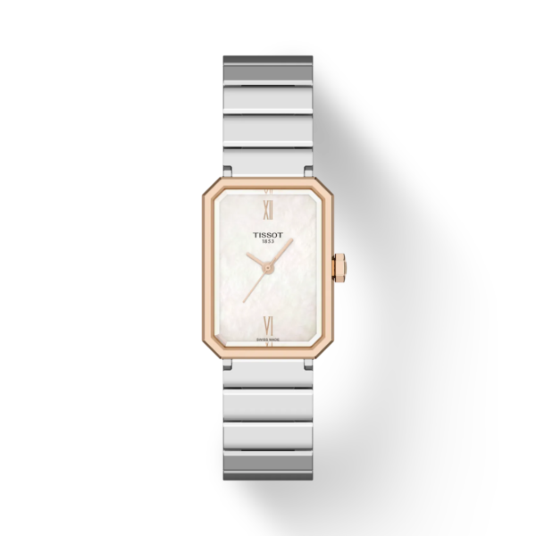 Das Quarzwerk der Tissot SRV sorgt für dauerhafte Präzision, und dank der End-of-Life-Anzeige, die frühzeitig das Ende der Batterielebensdauer signalisiert, gibt es keine ungewollten Überraschungen. SRV ist nicht einfach nur ein Name, sondern steht für „Saphirglas“, „Rechteckig“ sowie die römische Zahl Fünf (V): Das facettierte Saphirglas folgt der eckigen Form des 316L-Edelstahlgehäuses mit den Maßen 30 x 21,8 mm, und das „V“ repräsentiert die Wasserdichtigkeit bis zu einem Druck von 5 bar (50 m).